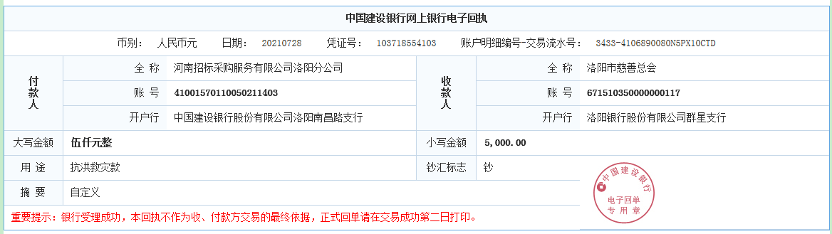 公司博士、浚县原挂职副县长沈琦,在挂职工作即将结束之时,忧心受灾群众,通过网络平台发布浚县的汛情和求助信息后,联系多 支救援队伍一起,帮助被困群众安全转移; 商丘分公司经理孙传华,作为一名退伍兵,他退伍不褪色,脱下军服仍心系民生,捐资筹物一卡车,从商丘连夜送至郑州; 洛阳分公司同事们心系灾情,默默奉献,向洛阳市慈善总会爱心捐款5000元;
